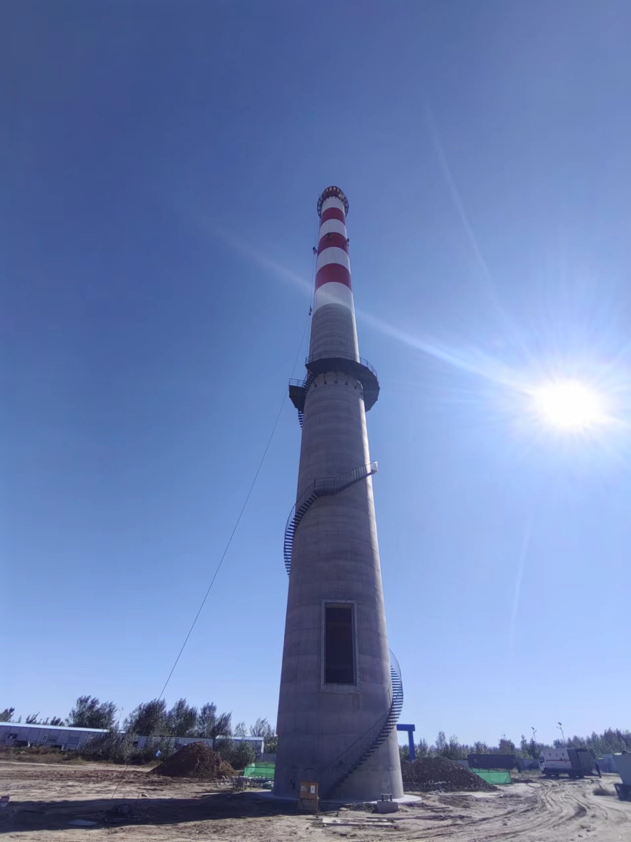 - 混凝土煙囪新建該混凝土煙囪新建工程的特殊性,在安全、快捷、方便的目標下,根據本公司現場考察,依托本公司雄厚的技術實力和豐富的高空作業(yè)的經驗,結合施工現場復雜的施工環(huán)境特制定如下施工方案